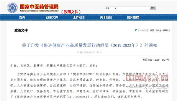 促進健康產業高質量發展行動綱要(2019-2022年)