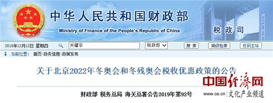 關于北京2022年冬奧會和冬殘奧會稅收優惠政策的公告