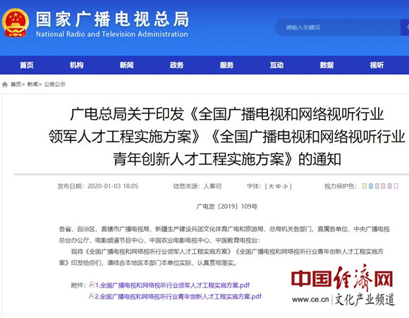 《全國廣播電視和網絡視聽行業領軍人才工程實施方案》