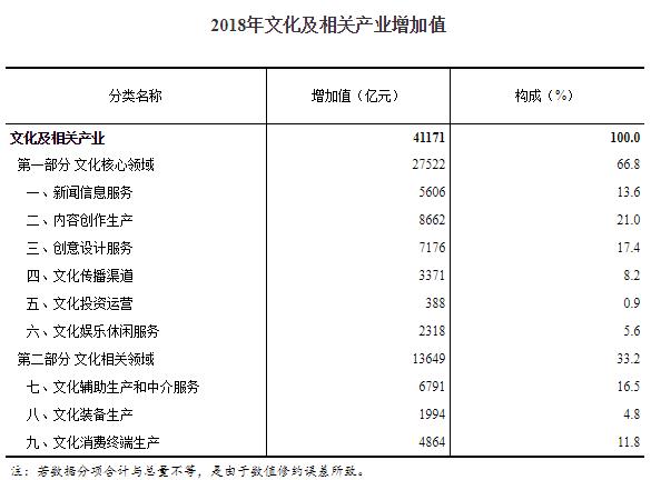 文化及相關產(chǎn)業(yè)增加值的核算范圍包括《文化及相關產(chǎn)業(yè)分類(2018)》中規(guī)定的全部文化及相關活動。