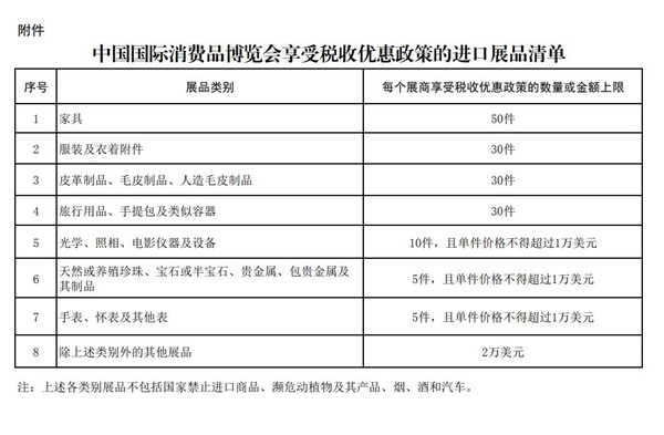 附件:中國國際消費品博覽會享受稅收優惠政策的進口展品清單