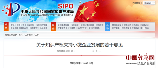中國經(jīng)濟網(wǎng)北京10月14日訊 中國經(jīng)濟網(wǎng)文化產(chǎn)業(yè)頻道記者從國家知識產(chǎn)權(quán)局網(wǎng)站獲悉,國家知識產(chǎn)權(quán)局近日印發(fā)了《關(guān)于知識產(chǎn)權(quán)支持小微企業(yè)發(fā)展的若干意見》(以下簡稱《意見》)。據(jù)中國經(jīng)濟網(wǎng)文化產(chǎn)業(yè)頻道記者了解,該《意見》從扶持小微企業(yè)創(chuàng)新發(fā)展、完善小微企業(yè)知識產(chǎn)權(quán)服務、提高小微企業(yè)知識產(chǎn)權(quán)運用能力、優(yōu)化小微企業(yè)知識產(chǎn)權(quán)發(fā)展環(huán)境4個方面,提出了支持小微企業(yè)創(chuàng)新成果在國內(nèi)外及時獲權(quán)、完善小微企業(yè)專利資助政策、扶持知識產(chǎn)權(quán)服務業(yè)小微企業(yè)等15條具體措施。