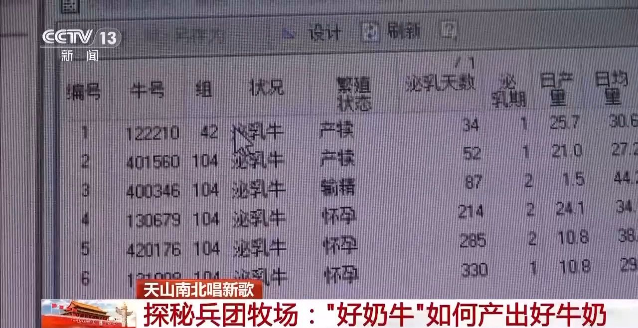 總臺央視記者 陳允濤:在新疆生產建設兵團第十二師天潤乳業(yè)北亭萬頭牧場,這塊大屏幕就是奶牛場的智能管理系統,每一頭奶牛的健康狀況都可以實時監(jiān)控。