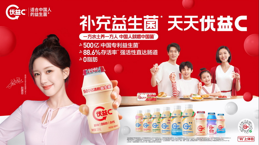 優益C “適合中國人的益生菌”,連續四年品牌力行業第一。優益C全線產品使用中國專利益生菌PC-01, 斬獲第二十四屆中國專利銀獎及2023年度國家科學技術進步獎二等獎,是目前乳業在專利領域唯一且最高榮譽。優益C 100ml暢快新品行業首創的5株復合中國益生菌,上市后好評席卷各大平臺。通過分眾媒體曝光、小優尋菌之路主題營銷、大優奧運主題營銷拉近與消費者的距離,“一方水土養一方人,中國人就補中國益生菌”的概念深入人心,備受消費者喜愛。