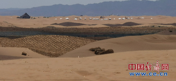 點沙成金,綠富同興。唐希明還積極引導當地人種植沙蔥和經濟林。“沙漠是陸地生態系統的重要組成部分,在防沙治沙的基礎上,我們更要學會利用沙漠資源,大力發展沙漠旅游、沙漠牧場、光伏發電等產業,形成人沙和諧、沙為人用的良好局面。”在唐希明看來,向沙漠要效益的前提,首先是要通過鎖邊治理使得周圍形成一道綠色的屏障,從而擋住風沙。有了好的生態環境,才會有更多產業發展的可能。沙坡頭區旅游產業的快速發展就是中衛治沙成績的有力見證。