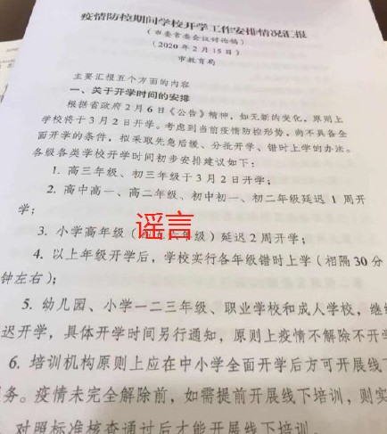 經(jīng)濟(jì)日報(bào)-中國經(jīng)濟(jì)網(wǎng)2月19日訊 (記者朱國旺郭文培) 近日,一張名為“疫情防控期間學(xué)校開學(xué)工作安排情況匯報(bào)”的截圖在網(wǎng)上瘋傳。截圖顯示,這是一份學(xué)校開學(xué)安排情況的討論稿,對開學(xué)時間作了初步安排,并有如下表述:“根據(jù)省政府2月6日《公告》精神,如無新的變化,原則上學(xué)校將于3月2日開學(xué)。”