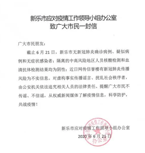 河北新樂市信譽樓有新冠肺炎傳播風險?